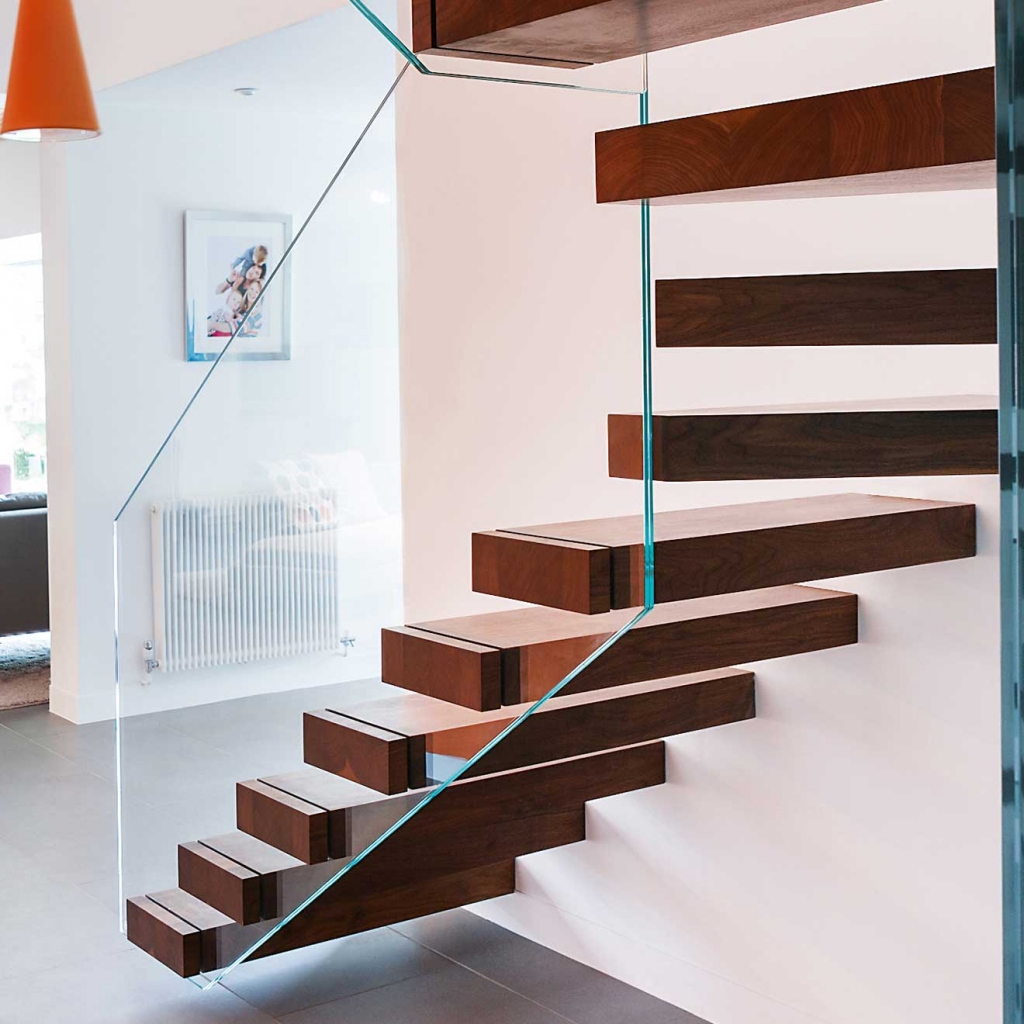 A lebegő lépcsők egy külön kaszt a lépcsők között és különleges megjelenést is biztosítanak, mivel általában maximum egy oldalon vannak a falhoz rögzítve így instabil hatást keltve (csak ránézésre) ugyanis a falhoz érő oldaluk csak látszólag simul kecsesen a falhoz. Valójában egy vastag, általában u profilú gerenda van a falba süllyesztve (industrial lépcsőknél akár látszódni is szokott) és erre hegesztve vannak erős acél lapok vagy rudak esetleg egy zártszelvény keret, ami bőven elég tartást biztosít. Ezt a vas szerkezetet általában fa lépcsőburkolás takarja el, ami kellemes meleg megjelenést és kényelmes, biztonságos használatot kölcsönöz a fával burkolt lebegő lépcsőknek.